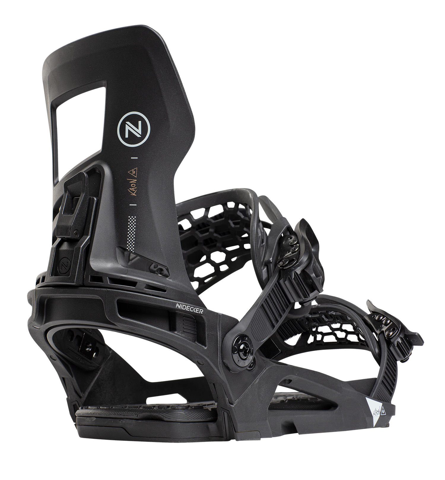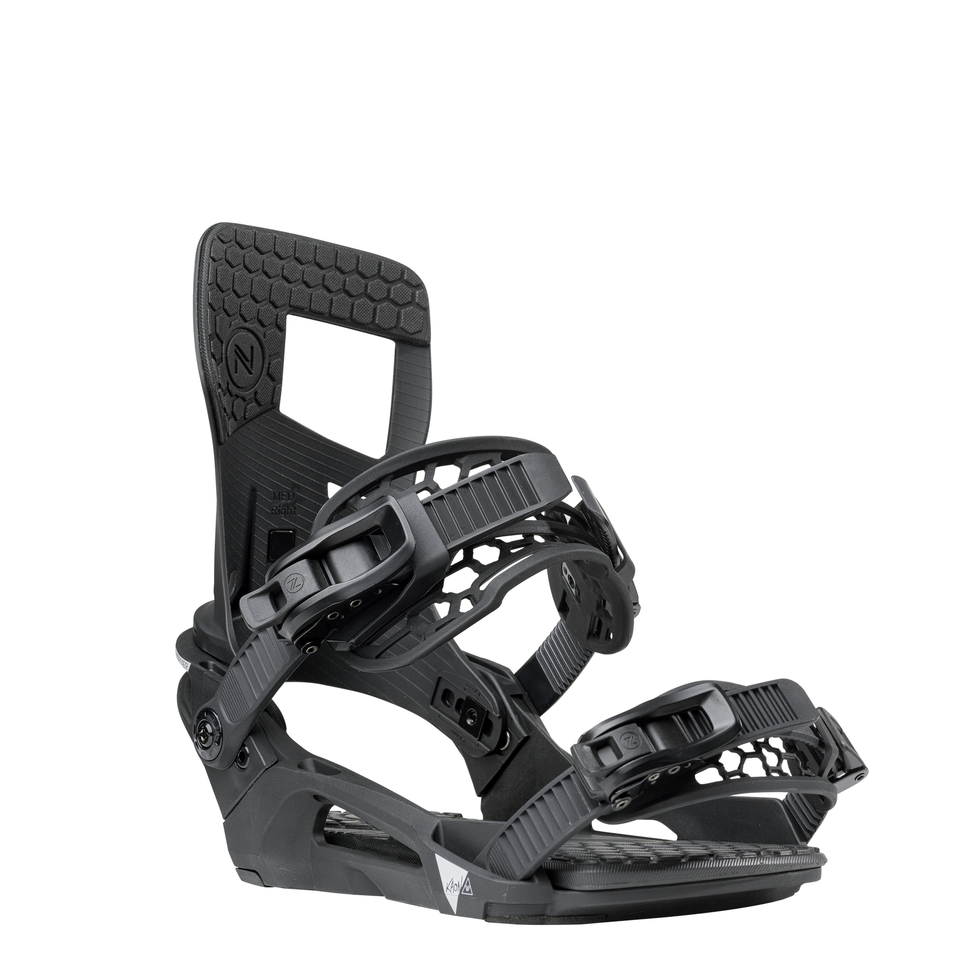 The Kaon-W Plus is a fun all-mountain binding with extra support for charging the hardpack, slashing some banks, or sending it in the park. The unibody-style baseplate and heelcup are made of glass-filled nylon, which is light and sturdy without being as stiff as carbon. When set up with your standard angles, rockered corners and off-axis powerbeams allow the board to flex organically and distribute energy to the edges more efficiently. The nylon Asym Hadron-Hiback has a great heel-edge responsiveness and tool-free forward lean adjustability. It, like the rest of the binding, has been engineered to work well with the AsymFitTM boots.
