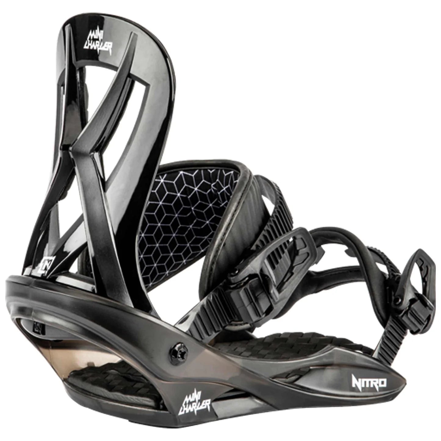 Looking for a binding your young one can grow into well you're lookin at it, here is the Nitro Charger Mini Binding. Built to be comfortable and flexible so your kid can get the feel they want. The Chargers perfect fit ankle strap and quick fit base frame makes it so your kid can fine tune their binding to their liking without it being to complicated. If you have a question about this product call us at (614)-848-6600.
